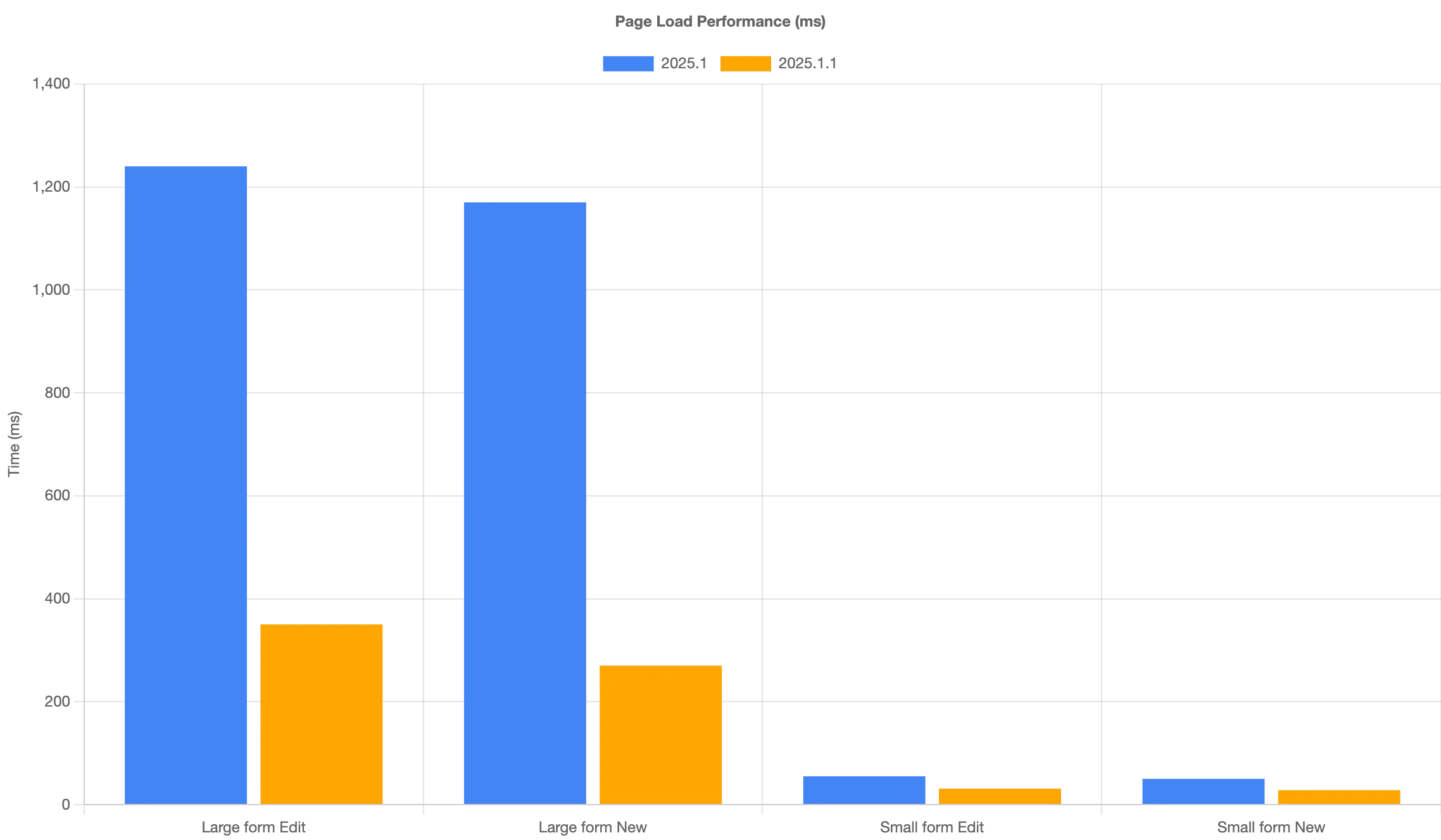 With Orbeon Forms 2025.1.1, we are introducing some significant improvements to page load performance, especially for forms with a large number of fields.